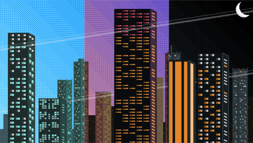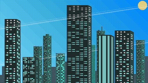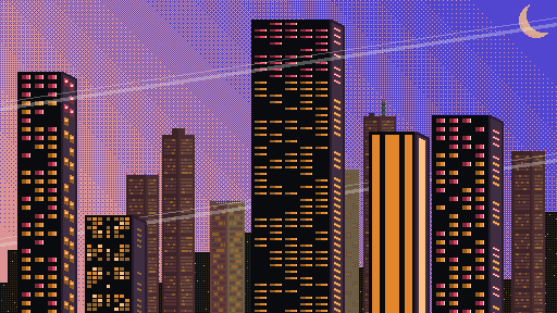 3种变体的视差效果像素城市天际线背景图片素材,包含有: