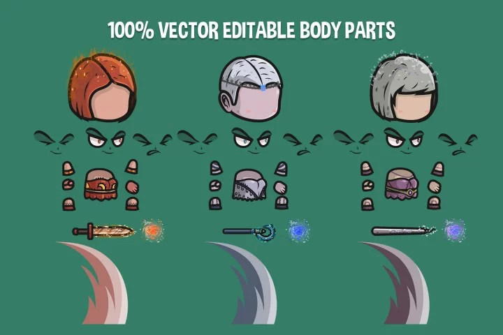 3个Q版卡通大头矢量2D魔法少女人物动画素材,对于2D游戏战役的创作者来说,这简直是一座宝库。毕竟,这里最多可以存储3个角色(女魔法师)。它们拥有高质量的画面,非常适合多种游戏类型(RPG、MMO-RPG、冒险、跑酷、模拟、竞技场、塔防等)。
