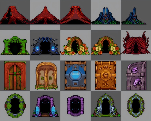 20个AI辅助生成的像素门素材2,免费提供 20 Pixel The Gates 02 用于 RPG 和冒险游戏……随时可用。