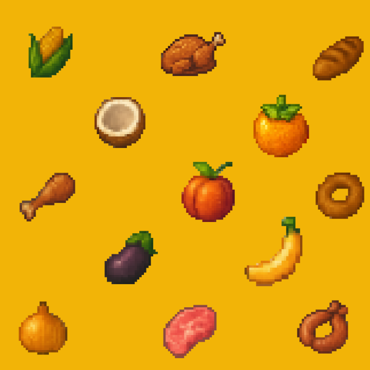 80+独特的免费像素食物素材,免费像素食物包。
