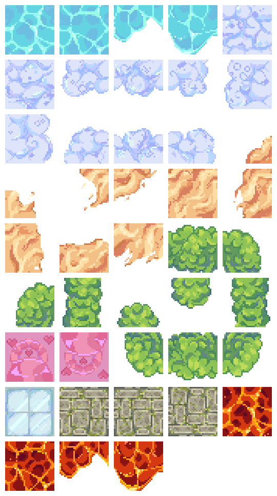 可平铺的像素艺术随机纹理素材,8 组可平铺的随机纹理, 分辨率:32*32px。 – 熔岩 – 水 – – – – – – – – – 布什—————— – 多云————— – 沙 – – – – – – – – – – 窗玻璃——– – 长满青苔的岩石———- —随机马赛克——— 声明:本站所有文章,均来源于网络用户收集上传。如若本站内容侵犯了原著者的合法权益,可联系我们进行处理。