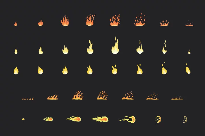 10个卡通矢量2D火焰动画特效素材,它包含丰富的火焰特效,助您最大限度地提升游戏关卡的多样性,并使战斗及其后续效果更具视觉冲击力和吸引力。